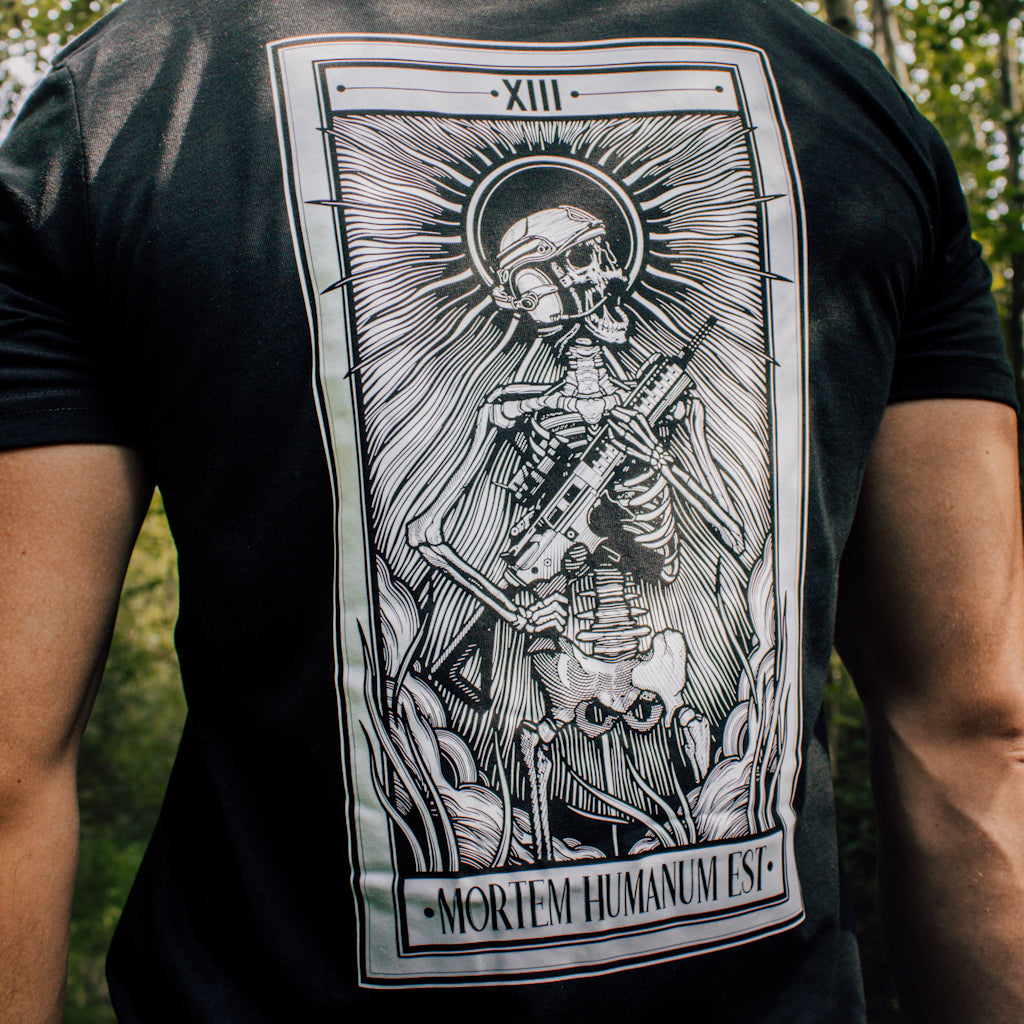 Inspiré des cartes de tarots et des gravures médiévales, notre modèle Mortem vous donnera un style unique et intrépide. Imprimé en France sur un tissu tri-blend de haute qualité.